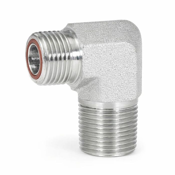11/16-16 Male Flat Face x 3/8"-18 M-NPTF 90? Elbow, Zinc Plated Steel