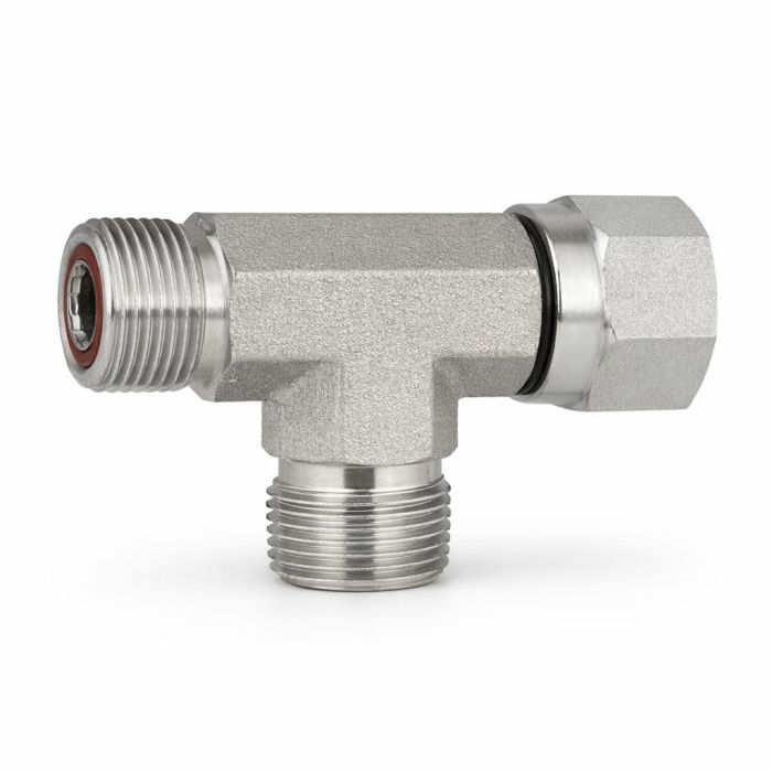Steel 1"-14 Male x Fem Swivel x Male Flat Face Run Tee