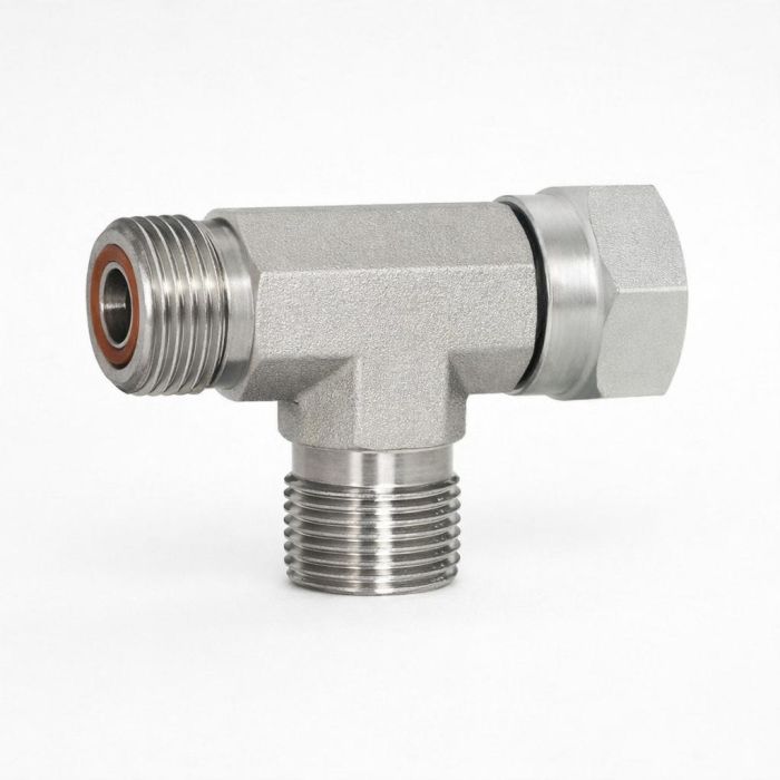 Steel 1-3/16" Male x Fem Swivel Male Flat Face Run Tee