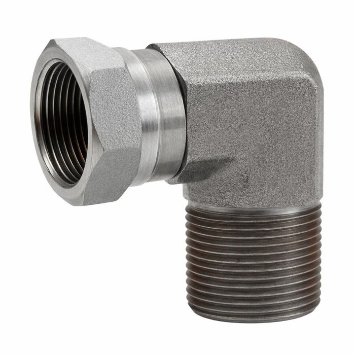 90° MNPTF x FNPSM Swiv Nut Elbow 1/2"-14 x 3/8"-18 (Plated Steel)