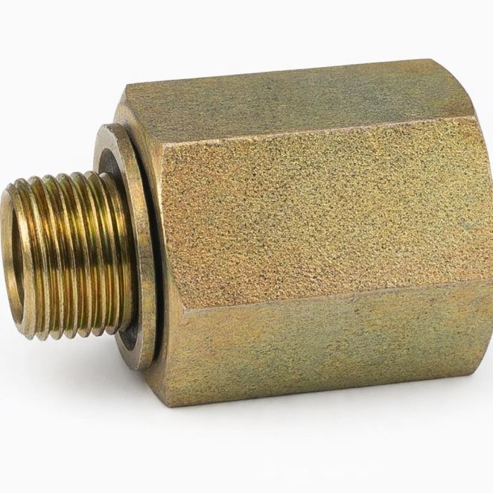 Steel 1/4"-18 Fem NPTF Pipe x M14X1.5 Male Metric Parallel Thread