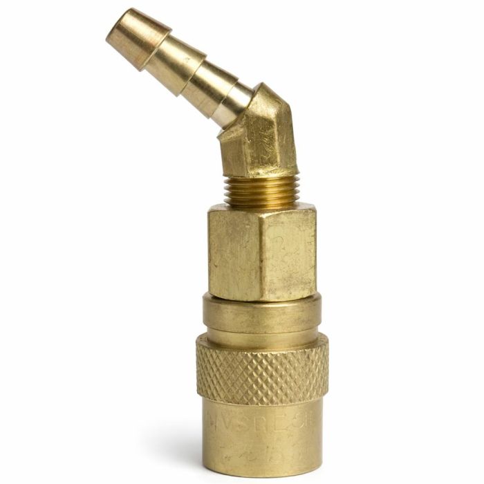 1/4 MOLD COUP, 3/8 45° BARB BRASS