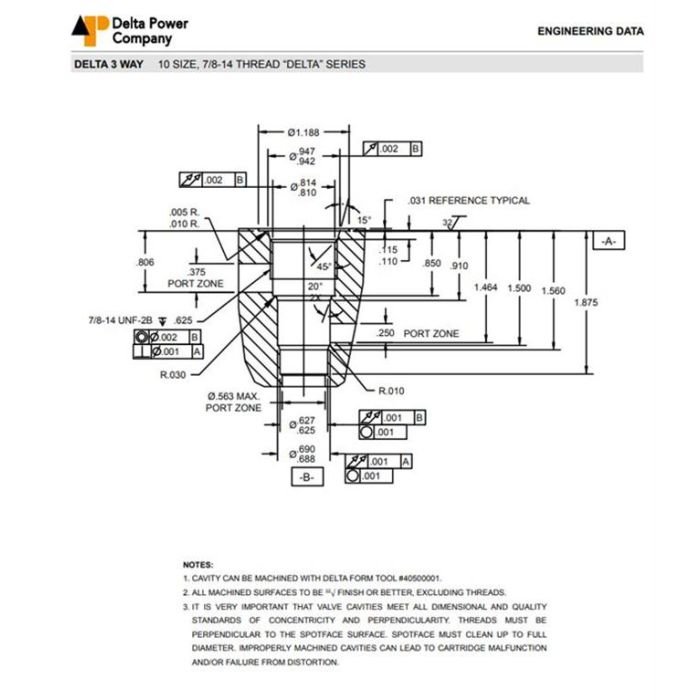 40500001 DELTA POWER, DELTA SERIES THREAD CAVITY, 3 WAY, 40500001