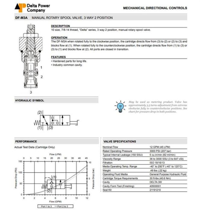 DF-M3A-V0 DELTA POWER, 3W2P MANUAL ROTARY, 10 SIZE, 7/8-14 THREAD, DELTA SERIES, W/ VITON SEALS, DF M3A V0, DFM3AV0