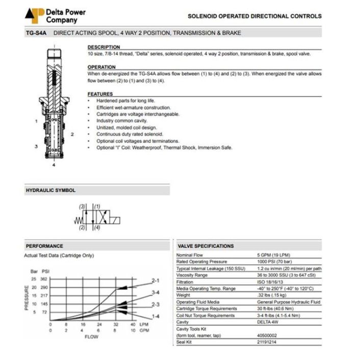 TG-S4A-V0 DELTA POWER, TRANSMISSION & BRAKE 4W2P SCREW-IN STYLE, DELTA SERIES 10 SIZE, 7/8-14 THREAD, W/ VITON SEALS, TG S4A V0, TGS4AV0
