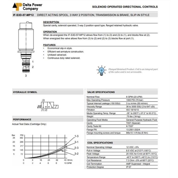 IF-S3D-57-MP12 DELTA POWER, TRANSMISSION & BRAKE 3W2P FLANGED SLIP-IN STYLE, FLANGED RETAINED HYDRAULIC VALVE , IF S3D 57 MP12, IFS3D57MP12