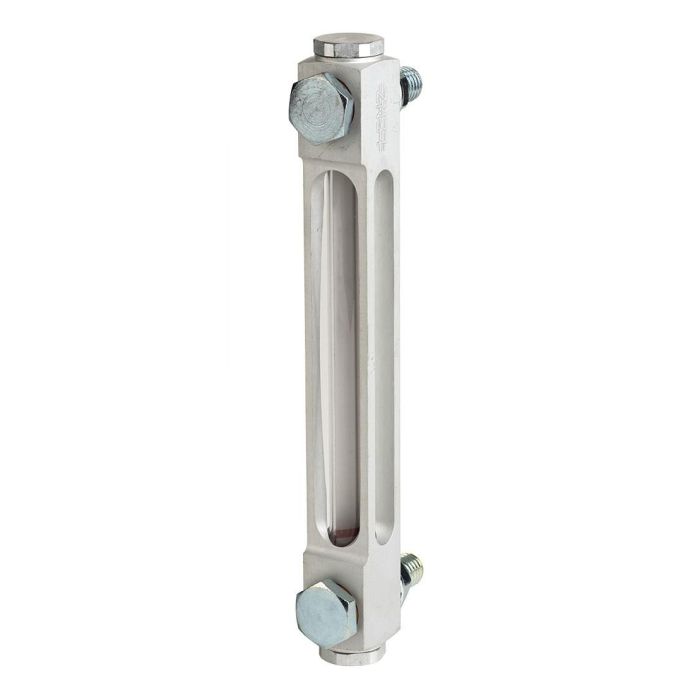 10" MOUNTING CENTER ALUMINUM SLOTTED LEVEL GAUGE, 1/2"-13 MOUNTING HARDWARE, VITON SEALS, GLASS TUBE