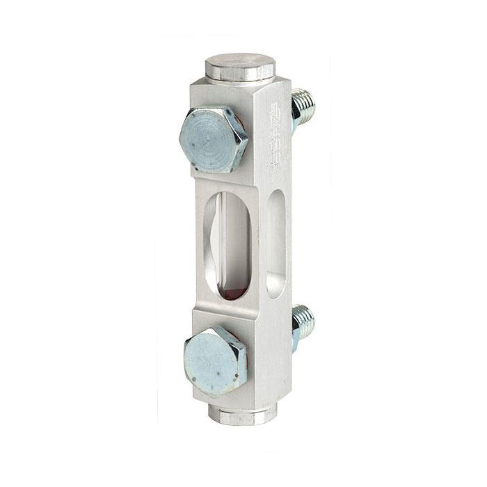 3" MOUNTING CENTER ALUMINUM SLOTTED LEVEL-TEMP GAUGE, 1/2"-13 MOUNTING HARDWARE, VITON SEALS, GLASS TUBE, THERMOMETER