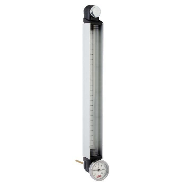 18" MOUNTING CENTER LEVEL-TEMP GAUGE WITH STAINLESS M12 MOUNTING HARDWARE, POLYCARBONITE TUBE, 90 DEGREE ROATATABLE VIEWING ALUMINUM GUARD, PROBE DIAL THERMOMETER