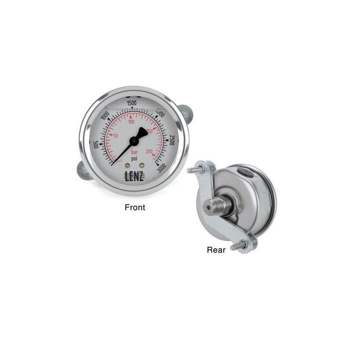 0-1500 PSI, 1/4" NPT, 2.5' DIAL, BACK CONNECTION, GLYCERIN FILLED, U CLAMP